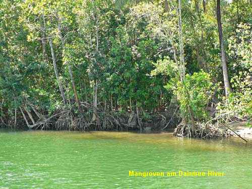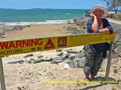 Wir verlassen den wunderschönen Campingplatz nach drei Nächten, um zum Cape Tribulation zu fahren. Vorbei geht es an einer malerischen Küste, hinein in den Regenwald. Am Straßenrand warnen Schilder vor querenden Kängurus und Kassuwaries wie bei uns vor Rehwild. In die Straße sind Stolpersteine fürs langsame Fahren eingelassen, die die Inneneinrichtung des Campers zu zerlegen drohen. Nur lässt sich leider keines der Viecher blicken. Am Cape stellen wir fest, dass wir viel länger als geplant für die Strecke gebraucht haben. Wir hätten einen Tag mehr einplanen sollen! Adieu Lookouts und andere Sehenswürdigkeiten, Campingplatz suchen. Morgen sind wir in Undara angemeldet. Es beginnt zu regnen und gewittern. Wir erreichen in der späten Dämmerung einen Platz in Wonga Beach und erfahren, dass wegen des Unwetters der Strom unterbrochen ist. Da es fürs Weiterfahren zu spät ist, gibt’s schnelle Küche bei Kerzenlicht. Wir gehen früh schlafen. Fazit des Tages: Wir haben noch nicht den richtigen Rhythmus gefunden, sind noch nicht relaxed genug. |
