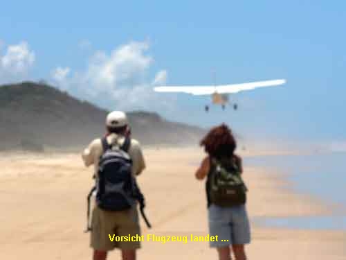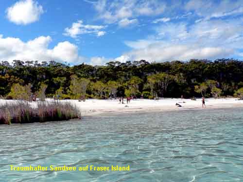 Ein letztes Mal werden wir über die holprige Sandpiste zurück zum Hafen transportiert. Der Slogan „Better Roads For Queensland“, den wir überall an den Straßen lesen, auf Fraser Island wird er zum Hohn.