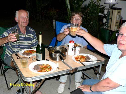 Mit einem Hopps setzt das vollbesetzte Flugzeug auf. Der Pilot sollte noch ein wenig üben. Endlich in Australien! In Cairns, den “wet tropics“ des Kontinents, wo Antje über ein halbes Jahr lebte, soll endlich das Abenteuer beginnen. Übermüdet schleppen wir uns zum Zoll. Traudel hat Sportgeräte und Medikamente sorgfältig gelistet und deklariert. Da kann nichts anbrennen! Im Gang stehen überall Schilder und Abfallbehälter mit dem Hinweis: Beware or declare! Ein Polizist hält uns an und bittet, dass wir unsere Rucksäcke abnehmen und auf den Boden stellen. Wir haben ein gutes Gewissen. Aber: Ein Hund schnüffelt am Gepäck. Bei Traudels Rucksack schlägt er an. Haben Sie die Zollerklärung verstanden? Haben wir! Sie haben nichts Verbotenes dabei? Nein!!! Auspacken! Alles liegt auf dem Tresen: Peters Notebook, die Fotoausrüstung, aber kein Frischfleisch und keine Drogen. Wieso hat der Hund angeschlagen? Auf der Zugfahrt von Stuttgart nach Frankfurt hatten wir ein Sandwich mit einer Frikadelle im Rucksack! Das hat der Hund noch nach Tagen erschnüffelt.
