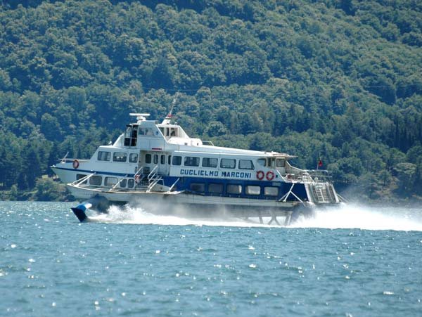 Gefährlich für Surfer. Das Tragflächenboot ist schnell!