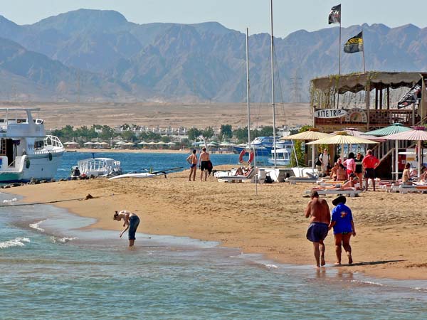 Der Strand von Safaga im November. Boote undTaue behindern den Start beim Surfen.